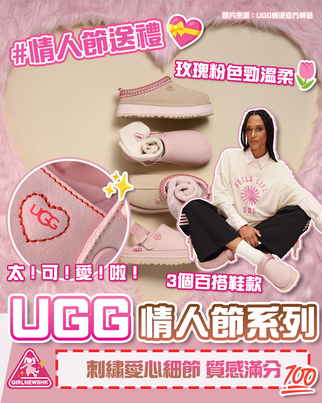 各位sis!今個情人節,無論你係單身又好、拍緊拖都好,都可以買對靚鞋氹自己開心呀!UGG推出全新系列 Love’26,真係忍唔住要大叫:太!可!愛!啦!總共有三款鞋型,有大家最常著嘅百搭Tazz,每對鞋係超溫柔嘅玫瑰粉色,著上腳即刻白兩度!最驚喜嘅位係有刺繡愛心,近睇都勁精緻,質感滿分!小編超級推薦大家get返對!
